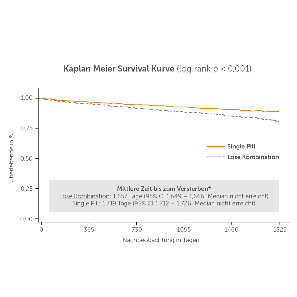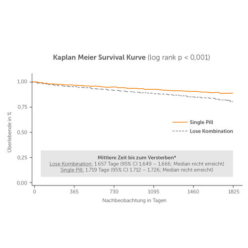 Die deutsche Studie „START“ belegte die kardiovaskulären Vorteile einer Single Pill-Therapie gegenüber einer losen Kombination.[10]Studie: Effect of Single pill combinations on Treatment Adherence and persistence as well as on clinical and pharmacoeconomic outcomes in the Real-world Treatment of hypertension, coronary heart disease, hyperlipidemia and in secondary prevention of cardiovascular events: A claims data analysis.[10]